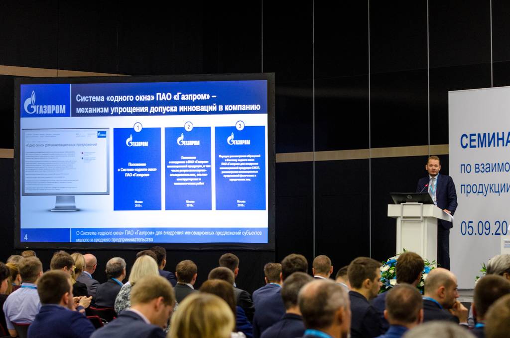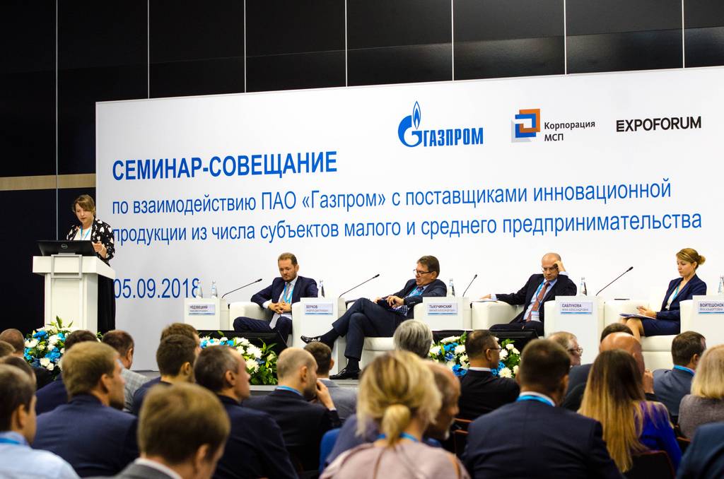 5 сентября 2018 года на площадке международного конгрессно-выставочного центра «Экспофорум» в г. Санкт-Петербурге был проведен очередной семинар-совещание по взаимодействию ПАО «Газпром» с поставщиками инновационной продукции из числа субъектов малого и среднего предпринимательства. В мероприятии приняли участие свыше 130 компаний-субъектов малого и среднего предпринимательства из 20 регионов Российской Федерации, представители 6 структурных подразделений и 25 дочерних обществ ПАО «Газпром». Общее количество участников семинара-совещания превысило 300 человек, включая представителей Корпорации МСП, Российского фонда содействия инновациям, Фонда «Сколково», ООО «УК «РОСНАНО», Ассоциации производителей оборудования «Новые технологии газовой отрасли», опорных вузов Компании.